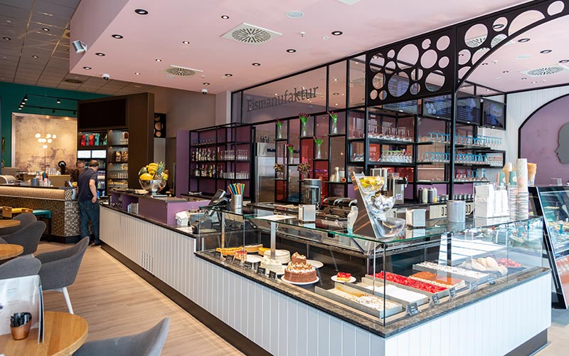 In unserem Stammcafé im LaHoMa (am Langenhorner Markt) schlägt das Herz von Fräulein von Elbe. Hier produzieren wir unsere hausgemachten Eiskreationen und verwenden ausschließlich gesunde und natürliche Zutaten und Rohstoffe. Täglich frisch stellen wir unser feinstes hausgemachtes Eis für Sie her –  unser Beitrag für die tägliche kleine Portion Genuss im Leben.Unsere verführerischen Kreationen gibt es natürlich nicht nur zum Mitnehmen. Das stilvoll-moderne Ambiente unserer Eiscafés und lädt zum Verweilen und Genießen ein.